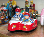| Noël approche, ce moment magique où les enfants vont demeurer émerveillés devant les jouets déposés par le Père Noël. Qui ne se souvient avec émotion de son premier train reçu à Noël, de ses soldats de plomb se livrant d'improbables batailles, de ses poupées superbes... ou plus simplement de ses chères Dinky Toys ?  Depuis de nombreuse années, Serge Ramel qui réside à saint Félix Lauragais se passionne pour les jouets qui étaient à la mode au siècle dernier, les jouets en tôle (on les appelle aussi jouets métalliques ou en fer-blanc). Son plaisir, comme pour tout collectionneur est de découvrir l’objet rare, de le remettre en état s’il le nécessite et de contribuer ainsi au maintien des témoignages essentiels de notre civilisation. |  La collection de side-cars de Serge Ramel   |