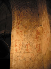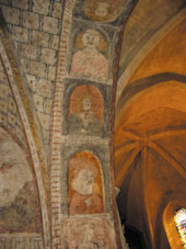 |  Têtes peintes sur le mur entre la chapelle de la vierge et la nef | |