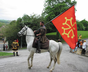 La reconstitution de la chevauchée des faydits : chevalier portant l’oriflamme