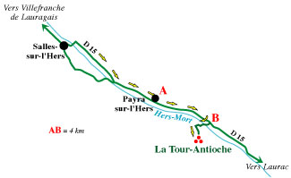 Antioche est sur le territoire de Payra sur l’Hers, à 5 km du village environ Sud Est et à 10 km de Salles sur l’Hers, au Sud du Mas, sous l’appellation La Tour ; Antioche est entrée dans mon histoire du Lauragais en 2005.