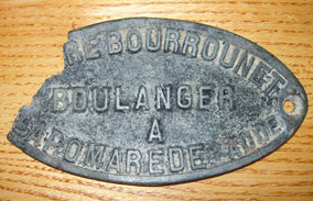 La plaque en fonte qui se trouvait sur le véhicule de livraison de Pierre Bourrounet