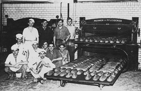 Si la plupart des villages avaient une boulangerie, il faut préciser que, jusqu’à la première guerre mondiale, quelques fermes avaient un four et confectionnaient leur pain qui consistait en des boules de 5 kg pouvant “tenir” une bonne semaine. Quant aux boulangers, et pratiquement jusqu’à la seconde guerre mondiale, ils fabriquaient uniquement des miches de 2 kg (navette fendue) et quelques pains de 1 kg dénommés “Charleston”. On n’en était pas aux flûtes, baguettes, couronnes, ficelles et autres bâtards chers aux parisiens... C’est que le pain devait “durer” : il n’y avait que 2 tournées par semaine. L’utilisation de la levure est apparue assez tard dans nos campagnes et la préparation du levain était une opération délicate pour le boulanger mais combien bénéfique pour le bon pain.