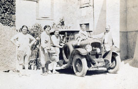 La famille Bourrounet et la Peugeot de 1920 (Georges est sur le capot)