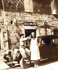 Georges et sa mère devant la boulangerie de Puginier (1945)